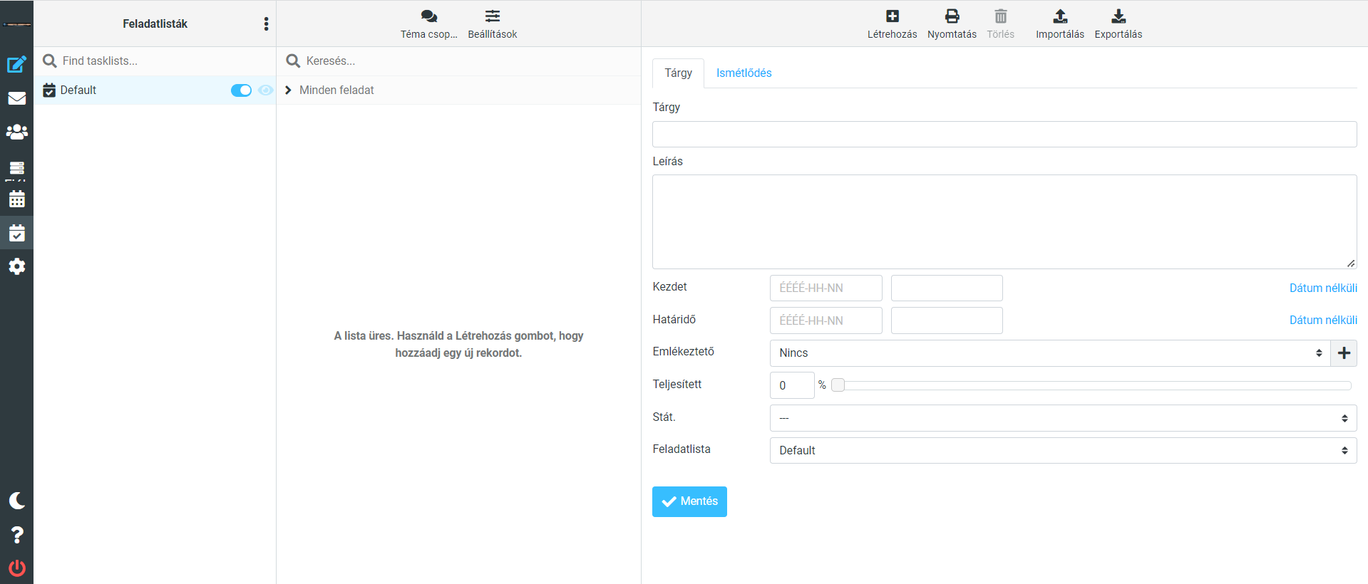 - Új Feladatok funkció: Lehetséges felvenni feladatlistát amihez társítható automatikus értesítés is.