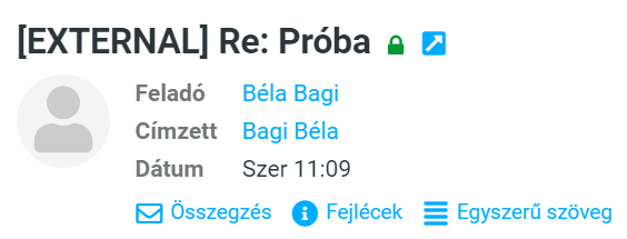 TLS titkosítással érkezett levél esetén minden levél fejlécében, a tárgy mellett látni fogtok egy kis lakatot. A lakat állapota és színe jelzi, hogy az adott email milyen titkosítással és biztonsági szintel érkezett.