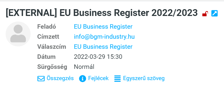 2. Kék bezárt lakat, ami azt jelenti hogy biztonságos belső rendszeren érkezett levél. (Ilyen például amikor belső rendszerüzenetet kapsz.)